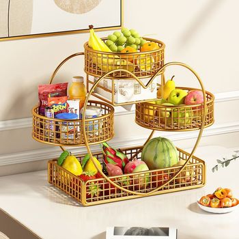 Metal Fruit Platter Living Room Coffee Table Multi-Layered Storage Rack Snack Display Plate Light Luxury Floor-Standing